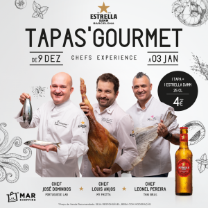 Les chefs étoilés José Domingos, Leonel Pereira et Louis Anjos servent des tapas accompagnés d'une bière Estrella Damm «pour seulement 4 €» jusqu'au 3 janvier