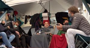 Maintenant dans leur cinquième journée épuisante sans nourriture, les huit hommes et une femme en grève de la faim devant le parlement de Lisbonne ont