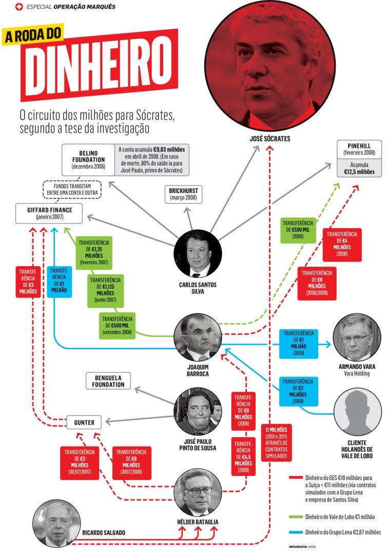 2. L’accusation estime qu’il y a eu blanchiment d’argent d’un montant de 1,2 million d’euros avec quatre entreprises simulé: trois appartements achetés par Carlos Santos Silva à la mère de Socrate et un autre à son ex-femme, Sofia Fava, à des prix supérieurs au marché.