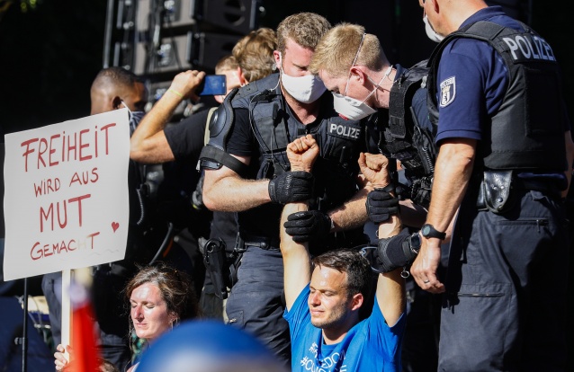 Des milliers de personnes se sont rassemblées samedi, dans les rues de Berlin, pour protester contre les restrictions imposées par la pandémie de covid-19 et malgré l'augmentation des nouvelles infections, les manifestations ont été appelées par plusieurs organisations, dont l'extrême droite.