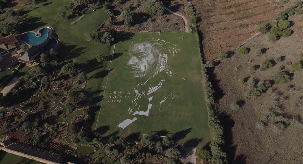 L'icône de la Formule 1 Lewis Hamilton a été «totalement époustouflé» par un tableau géant en son honneur qui a été peint sur un terrain de football privé à Mexilhoeira Grande, Portimão, par l'artiste de rue de l'Algarve HUARIU.