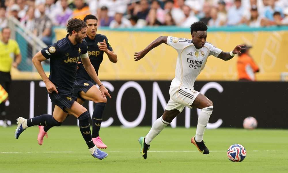 Titulaire au sein de l’attaque du Real Madrid ce mardi soir, pour la quatrième fois en autant de matchs dans cette Coupe du monde des clubs, Vinicius Jr n’a toujours pas affiché son meilleur niveau. Face à la Juventus, l’ailier brésilien s’est fait, une fois de plus, voler la vedette par son jeune coéquipier Gonzalo Garciaet paraissait bien insignifiant au moment du retour de Kylian Mbappé, accueilli sous un tonnerre d’applaudissements. Découvrez les notes et les commentaires qu’il a reçus dans la presse française.