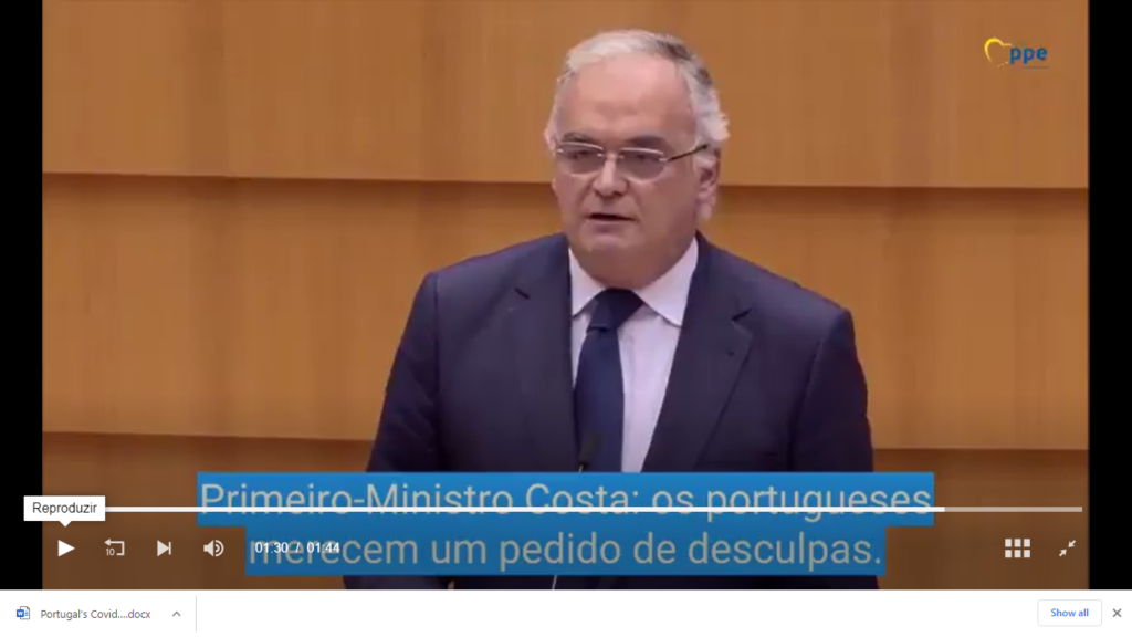Il y a deux semaines, M. Pons et d’autres membres de son parti ont écrit au président de la Commission européenne (Ursula Von der Leyen) pour demander une enquête sur cette situation. «Aujourd’hui, ici, je répète cette demande», a-t-il poignardé en l’air. «Et je demande au gouvernement portugais d’assumer ses responsabilités envers le peuple portugais ainsi que les Européens. Les mensonges devraient avoir des conséquences; une violation de l’État de droit ne peut rester impunie. Sr Costa, les Portugais méritent des excuses et le reste d’entre nous, de ne pas être traités comme des idiots. Merci beaucoup… »