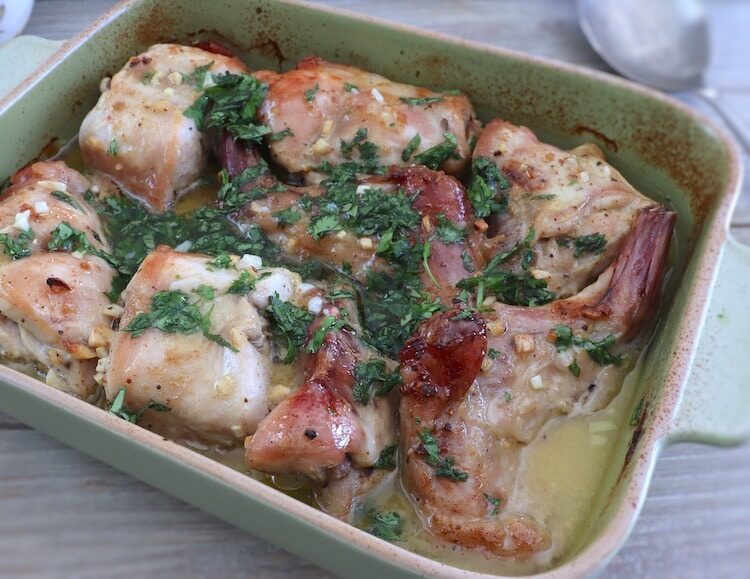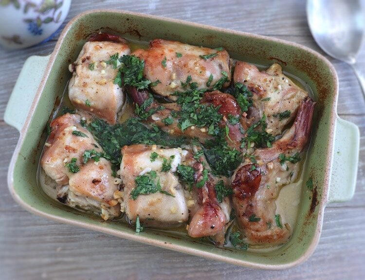 Parfois, le temps est compté et il y a peu d'idées pour préparer un repas simple et savoureux. Ce lapin au four arrosé d'une sauce préparée avec de délicieuses épices est un repas simple qui peut être servi en toute occasion. Saupoudrer de coriandre hachée et servir avec des frites!
