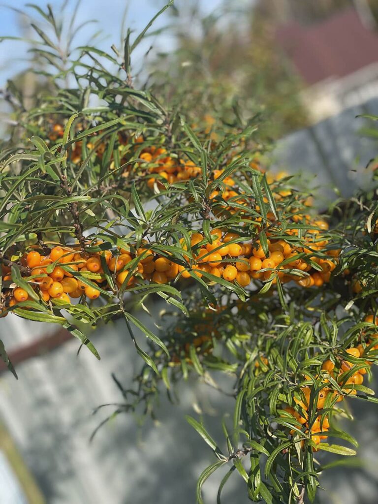 Je devais avoir six ans lorsque j’ai rencontré l’argousier pour la première fois. Son buisson de grande taille était constitué d’une poignée de longues branches largement dispersées, ornées de feuilles vertes étroites mais fermes et généreusement parsemées de petites baies oranges oblongues.