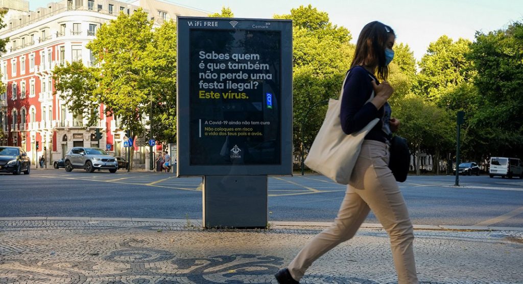 ● Le second s'applique au reste de la zone métropolitaine de Lisbonne, impliquant un état d'urgence, qui voit des restrictions sur les heures d'ouverture des magasins, la vente d'alcool après 20 heures et la réunion de personnes en groupe (pas plus de 10).
