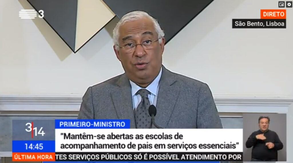 Le Premier ministre António Costa a mis la chair sur les os de la décision d’hier soir de fermer les écoles du pays.