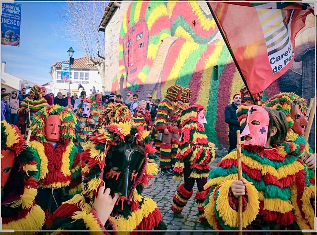 La tradition des Caretos de Podence est un rituel religieux préhistorique qui célèbre la fin de l'hiver et l'arrivée du printemps. Les habitants de la petite ville de Podence (historiquement des hommes, mais aujourd'hui aussi des femmes) portent des masques en cuir et des costumes colorés avec des cloches à la ceinture. Pendant trois jours, ils courent dans les rues du village, dansent et frappent les femmes avec eux comme un vieux rite de fertilité.