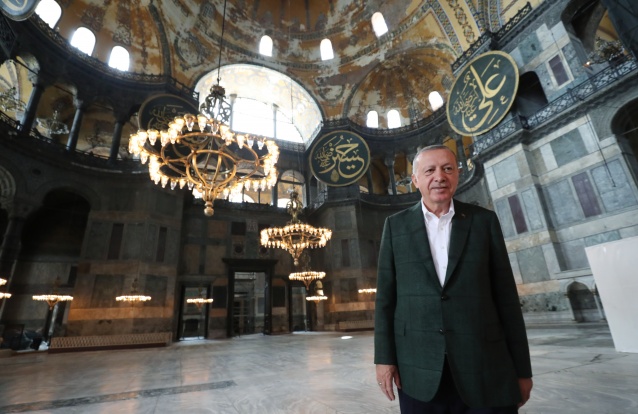 Il y a environ deux semaines, Erdogan a signé le décret annulant le statut du musée, donné au bâtiment en 1934, et a redonné l'autorité à Diyanet, l'organisme public qui gère les mosquées turques, équivalent à un ministère.