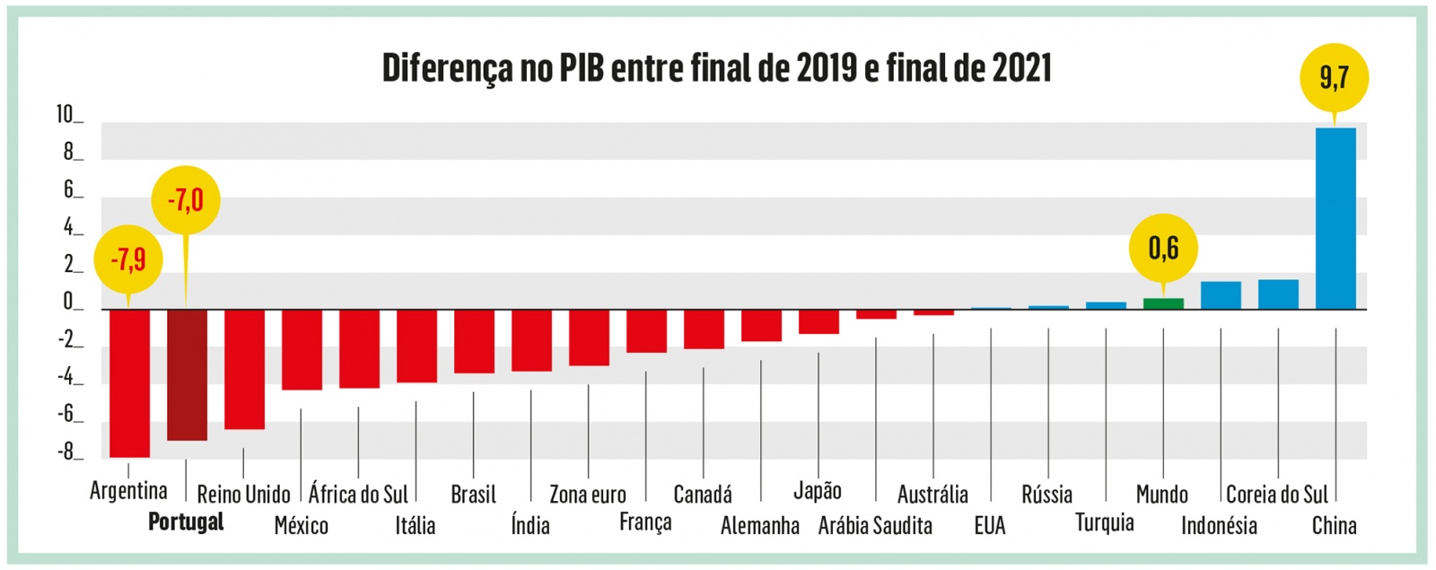 Avec les chiffres qui existaient jusqu’en septembre, le FMI a placé le Portugal comme la neuvième économie avancée avec des mesures de soutien moins directes dans un univers de 50. Dans l’Union européenne, seules la Finlande et la Slovaquie dépenseraient moins. Dans une analyse encore plus récente de l’OCDE, le Portugal est également apparu comme l’un des pays où le solde budgétaire sans intérêt se dégraderait le moins entre 2019 et 2022.