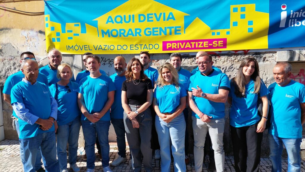 La toile « Les gens devraient vivre ici » a été installée par l’Initiative Libérale dans l’ancien Lar das Enfermeiras, à côté de Termas Caldenses, pour servir d’exemple d’une propriété qui pourrait être transformée en logement abordable pour les jeunes, mais « rien n’a été fait, il n’y a pas un seul projet », a déclaré Carlota Oliveira, la candidate du parti à la Mairie de Caldas da Rainha, qui le 1er était accompagnée du leader national, Mariana Leitão.