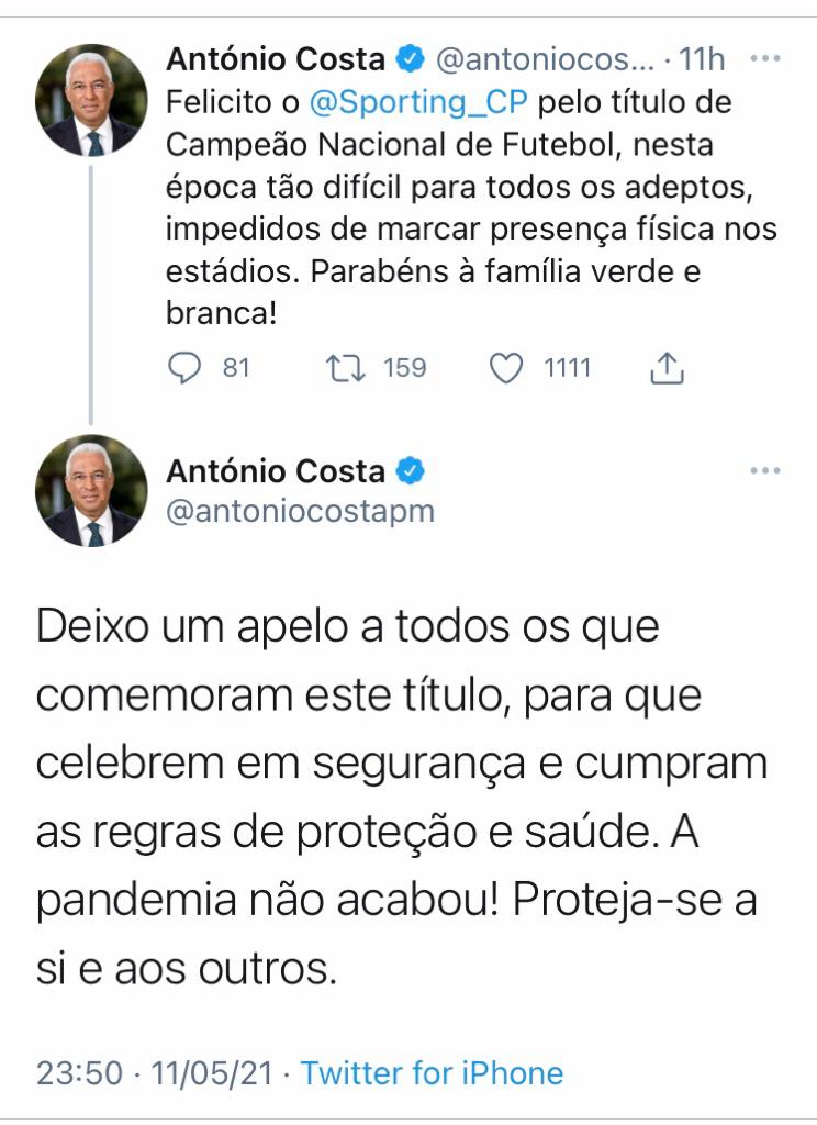 Au lendemain du parti vert et blanc, qui présentait de nombreuses personnes sans masque, de rassemblements et d’affrontements entre la PSP et ses partisans, le président de la République a déclaré que «la nuit ne s’était pas bien passée en termes de santé publique» et a admis que il espère que le scénario de tant de gens ensemble, sans masque, n’en viendra pas à avoir «des frais pour les Lisboetas».