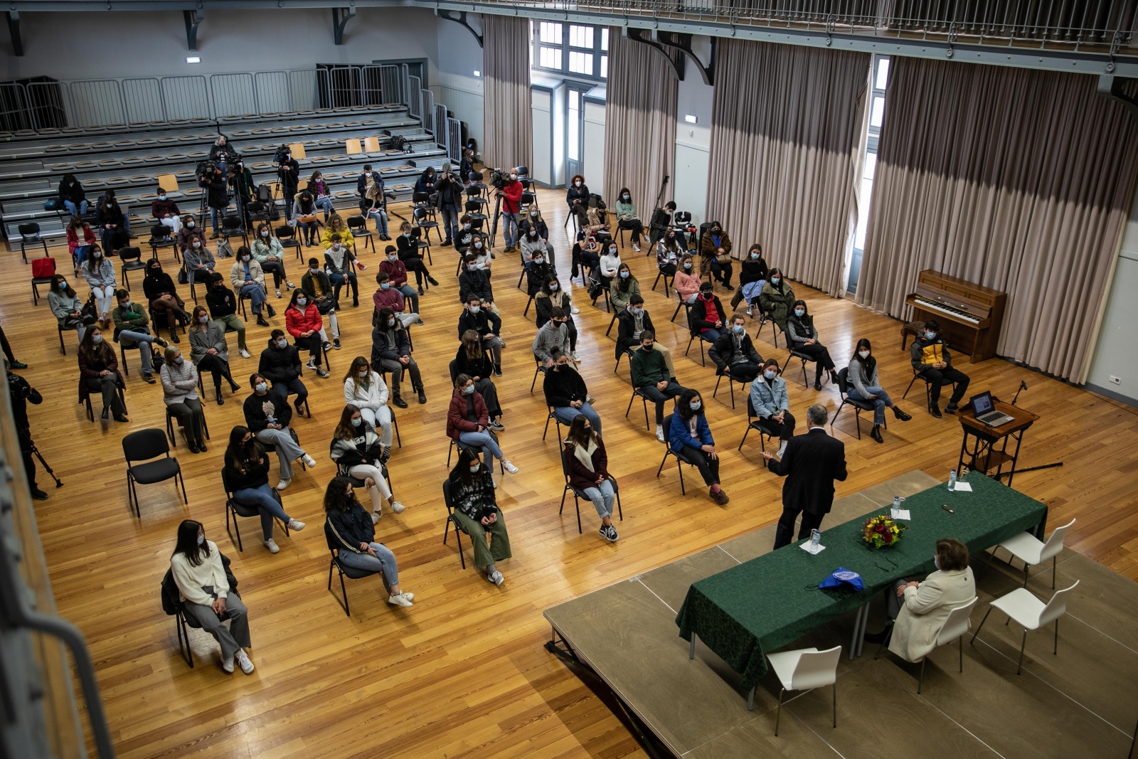 Il a vécu très intensément ces années, raconte-t-il aux étudiants d’aujourd’hui, assis sur des chaises à deux mètres l’un de l’autre, dans l’auditorium de l’institution, qui à l’époque de l’étudiant Marcelo était une salle de sport. Marcelo habitait à proximité, sur la Rua de São Bernardo, et est allé à l’école «quand la sonnette a commencé à sonner», bien qu’il n’ait jamais été en retard, garantit-il.