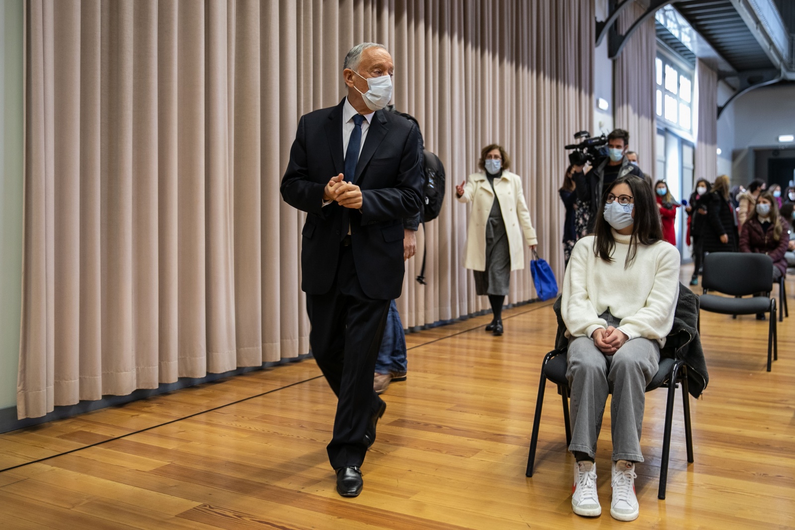 Alors qu’il s’apprêtait à parler de la pandémie, son téléphone portable sonne. «J’ai quelqu’un à l’étranger qui veut me parler», s’excuse Marcelo, avant de quitter la petite scène de l’auditorium pour pouvoir assister dans la salle voisine. Cela prend environ cinq minutes et à son retour, il explique qu’un «chef d’État étranger» avait vraiment besoin de lui parler. « La vie du président est comme ça ». Bientôt, il y a des rumeurs selon lesquelles il parlait en fait au Premier ministre, António Costa, des nouvelles mesures sanitaires et de la possibilité de fermer des écoles.