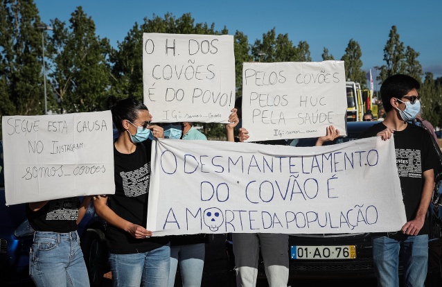 Avec une partie des personnes dans les voitures, remplaçant les mains qui claquent par des klaxons, et une autre partie à l'extérieur, à côté de la scène de la Praça da Canção, plusieurs acteurs, principalement des professionnels de la santé, ont exprimé leurs préoccupations concernant l'hôpital dos Covões , intégré à l'hôpital et centre universitaire de Coimbra (CHUC) en 2011.