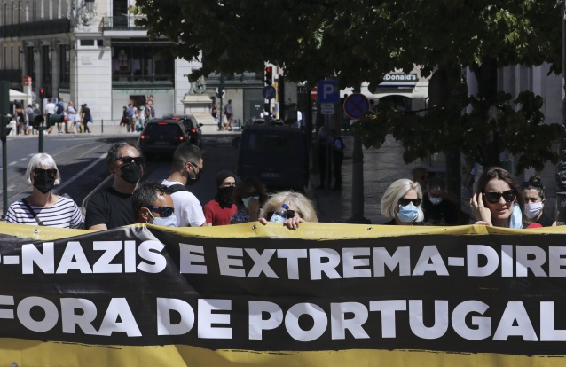 Contre le fascisme, le racisme et pour la liberté et les droits civiques, des centaines de personnes ont manifesté aujourd'hui à Lisbonne pour protester contre le fait que quiconque était là a dit que c'était nécessaire en raison de la volonté croissante de l'extrême droite de commettre des crimes.