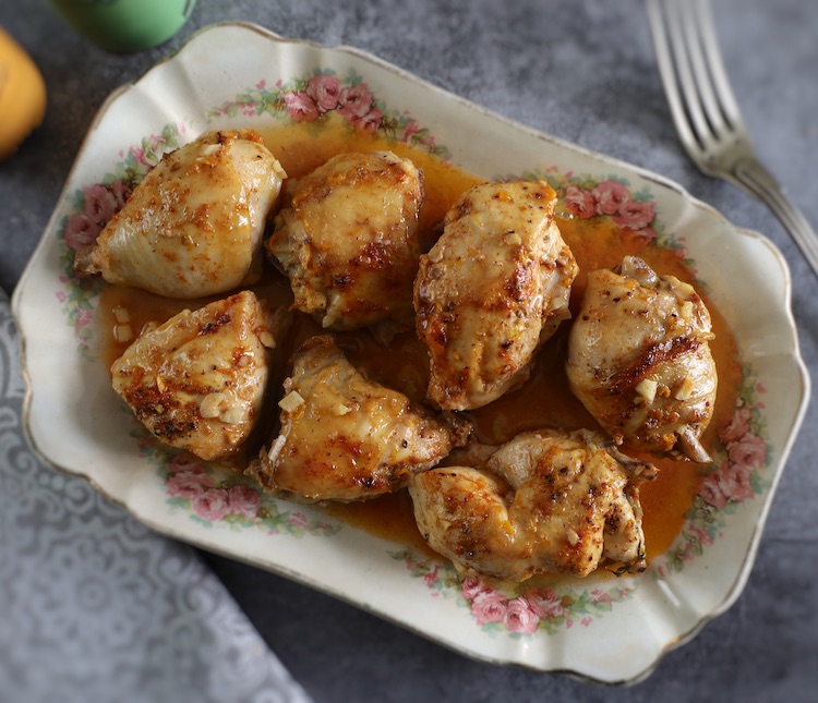 2. Nous cuisons habituellement le poulet à 180ºC (350 ºF) mais si vous baissez la température à 150ºC (300 ºF)malgré une cuisson plus longue, il a l’avantage de rehausser beaucoup plus les saveurs et le poulet devient plus tendre.