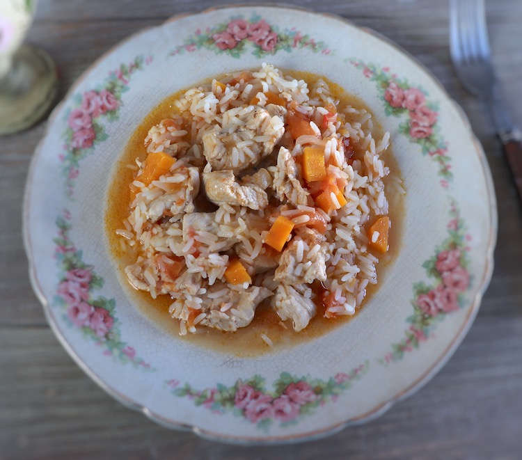 Vous souhaitez préparer un repas simple et réconfortant? Ce ragoût de riz à la tomate, l’oignon et l’huile d’olive, mélangé avec des morceaux de steak de poulet et de la carotte, c’est un repas pratique, simple et délicieux. Vos enfants vont adorer! Bon appétit !