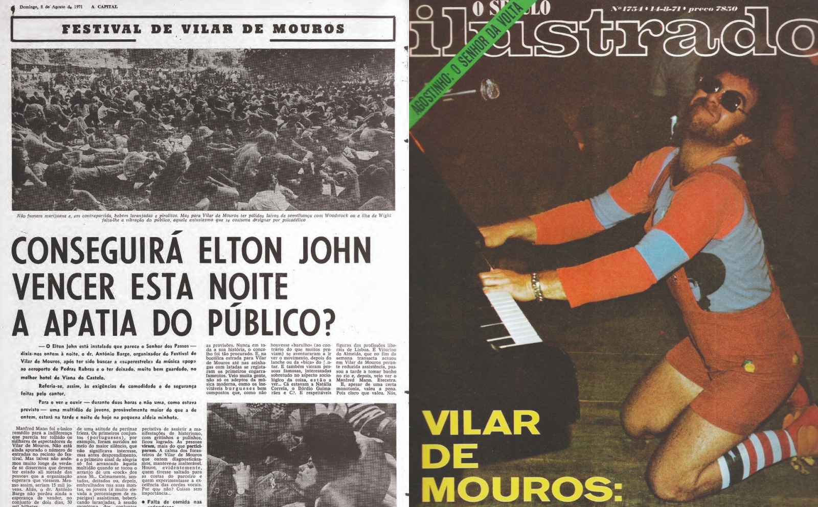 A população da pequena aldeia primeiro estranhou aquela multidão de “cabeludos” e depois entranhou o espírito – para desespero da igreja local que apenas viu “libertinagem” em Vilar de Mouros. O pároco da aldeia excomungou António Barge, a família deste e todos os colaboradores do festival… O relatório final da Direção-geral de Segurança (DGS) também não foi brando em relação aos “comportamentos promíscuos” daqueles “hippies famintos e cabeludos”. E a indumentária extravagante da estrela Elton John também não passou despercebida à polícia política, que sinalizou “os modos soberbos” e a “má impressão” causada pelo artista britânico…