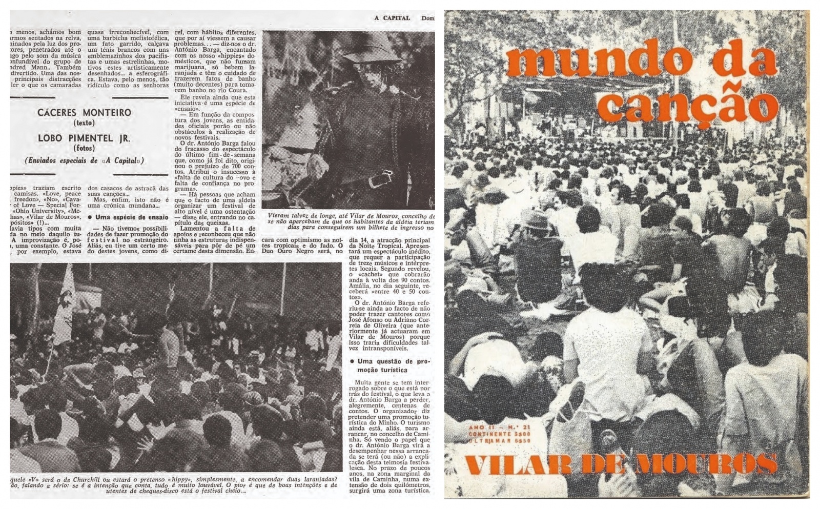 As pessoas nuas a tomar banho no rio, a multidão de mochila às costas que rumou à boleia para uma isolada aldeia minhota, os charros fumados em público pela primeira vez, o pop rock a assumir-se como banda sonora de uma nova geração, já influenciada pela cultura hippie mas ainda amordaçada pelo regime marcelista… São tantos os “postais” que poderiam desatar esta viagem no tempo. Vilar de Mouros foi um momento histórico, tanto em Portugal como na Europa – à exceção de Inglaterra, um festival de música com mais de 20 mil pessoas era um fenómeno inédito. Mas durante três fins de semana de agosto de 1971, este festival foi o “Woodstock português”, palco para grandes bandas e músicos, e cenário para algumas revoluções de costumes que, coisa inédita, desafiaram, coletivamente, os anacrónicos cânones morais impostos pela ditadura.