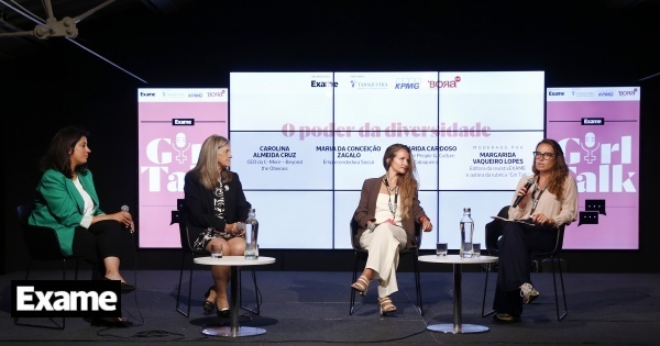 220622 First Girl Talk Conference, du magazine EXAME, au Time Out Market – Mercado da Ribeira, photographié pour le magazine EXAME, Lisbonne le 22 juin 2022. Le pouvoir de la diversité, avec Carolina Almeida Cruz, Maria da Conceição Zagalo et Margarida Cardoso, modérée par Margarida Vaqueiro Lopes. Photo: Marcos Borga